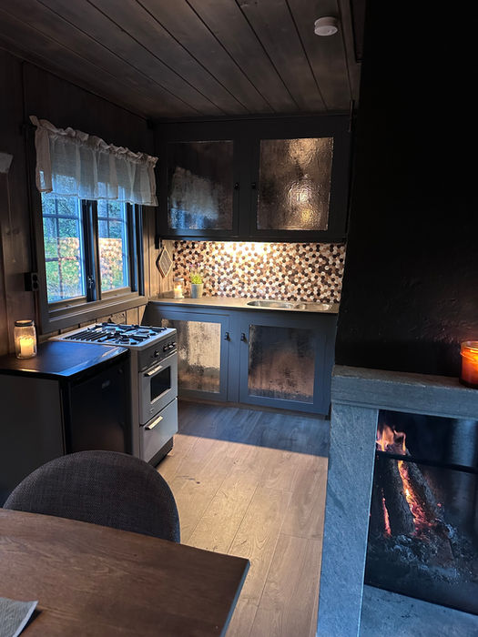 Hytta i skogen ligg som ein liten gøymestad rett under tregrensa, omgjeven av furuskog, mose og stillheit. Her får du det ekte hyttelivet – med vedomn, dobbeltsenger og enkel standard – men likevel med solcellestraum, godt kjøleskap og nyoppussa rom med varme og sjel.